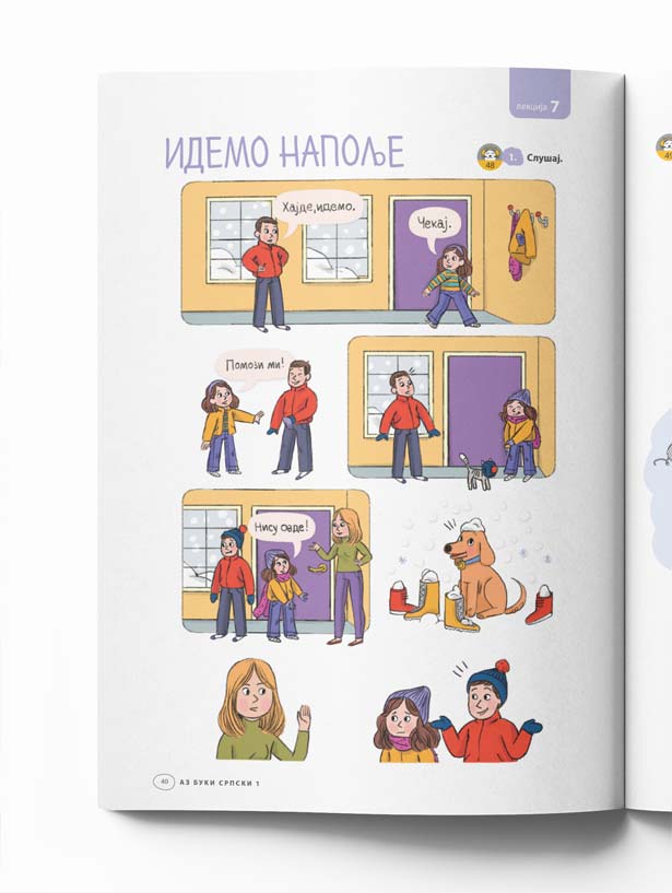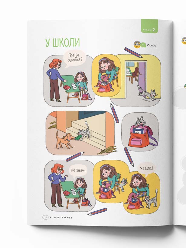 The textbook and workbook are illustrated, and the content is adapted to children who are just beginning to study Serbian, or who already possess some minimal knowledge of the langauge.