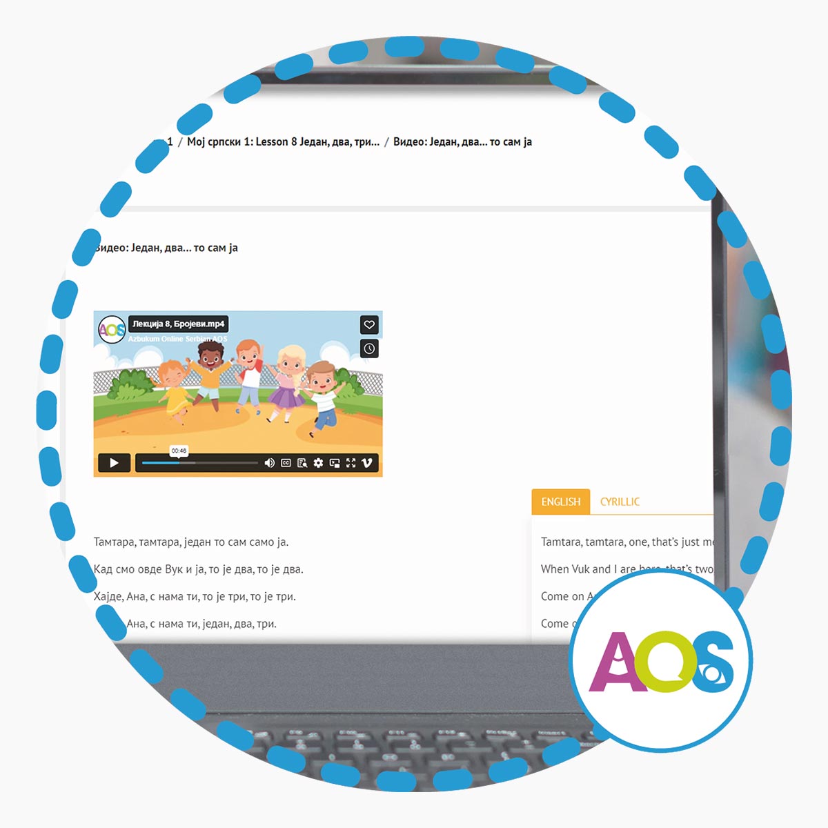 AOS regularni za mlade A1.1 program namenjen je deci i mladima, apsolutnim početnicima u učenju srpskog. Kurs AOS A1.1 obuhvata reči i izraze vezane za teme: upoznavanje, porodica, soba, najbolji drug, rođendan itd.