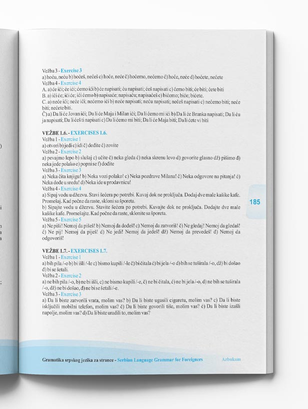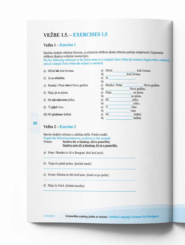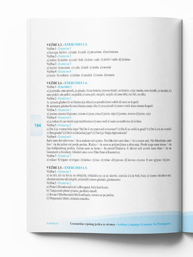 Iza svakog primera date su vežbe za lakše usvajanje gramatičkih pravila. Rešenja svih vežbi nalaze se na kraju Gramatike.