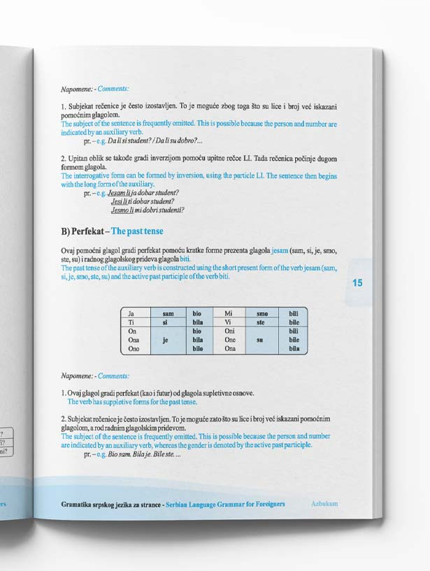 Ovo je priručnik za samostalno usvajanje gramatike srpskog jezika od početnog (A1) do srednjeg nivoa znanja (B1). Kratka objašnjenja gramatičkih pravila data su paralelno na srpskom i engleskom jeziku.