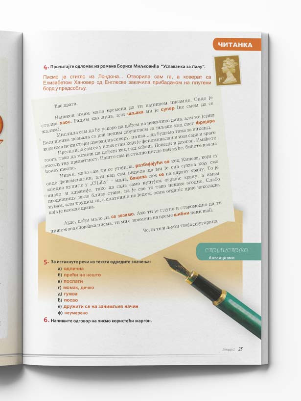 Posebnu draž i izazov u učenju donosi Čitanka sa odlomcima iz savremene srpske književnosti koja donosi mogućnost za prepuštanje srpskom uz vrsna pera naših pisaca.